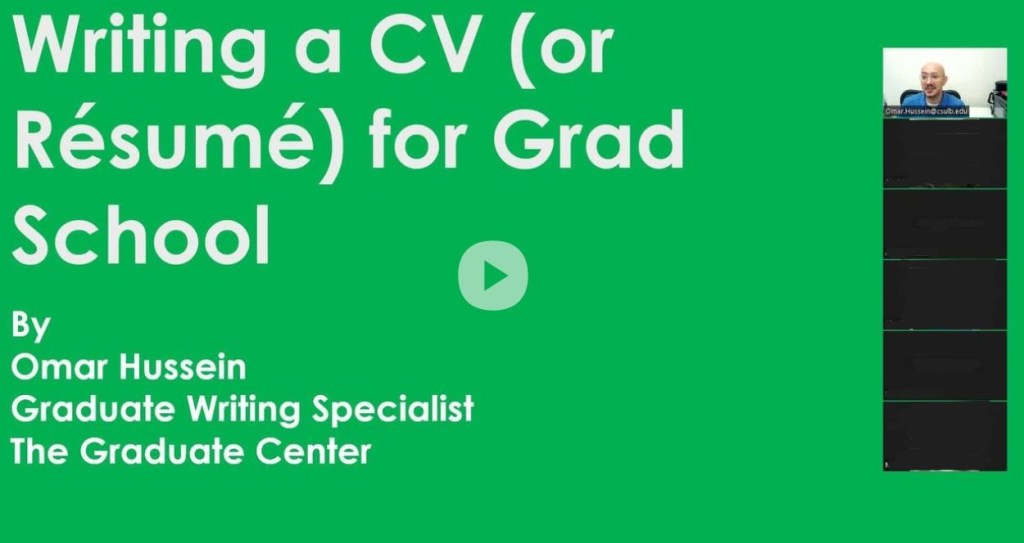 Video: Workshop on CV-writing for Grad School (48 MIN)