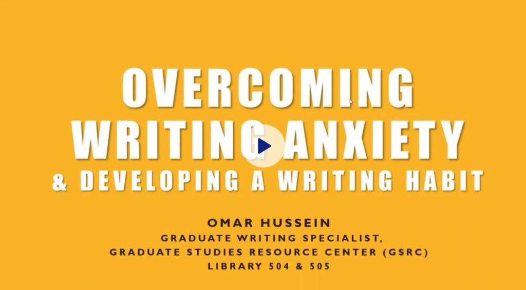 You can view or download a recording of my Workshop on Overcoming Writing Anxiety (recorded Nov 11, 2023) by clicking on the image below: