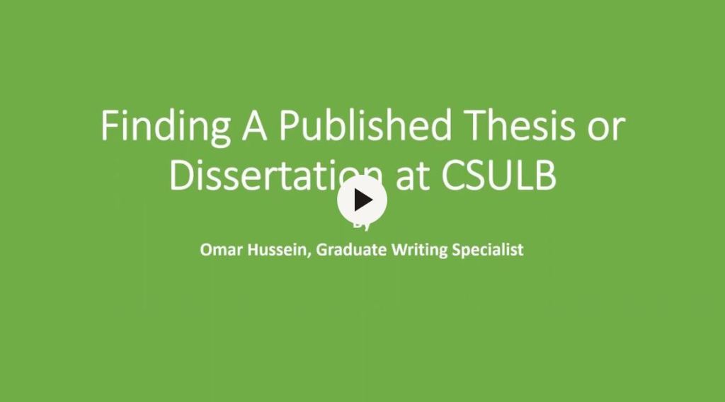 Video: Finding A Published Thesis or Dissertation at CSULB (6 min)